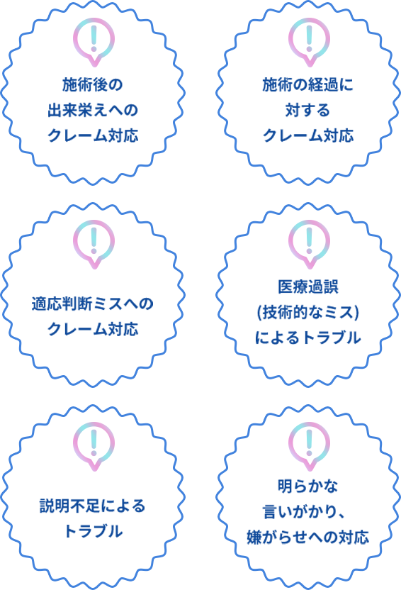 重大なトラブルに発展する前のクレームの段階で、医師に代わり弁護士が対応することができるため、大きなトラブルに発展するリスクを軽減し、早期解決を目指すことが可能となります。