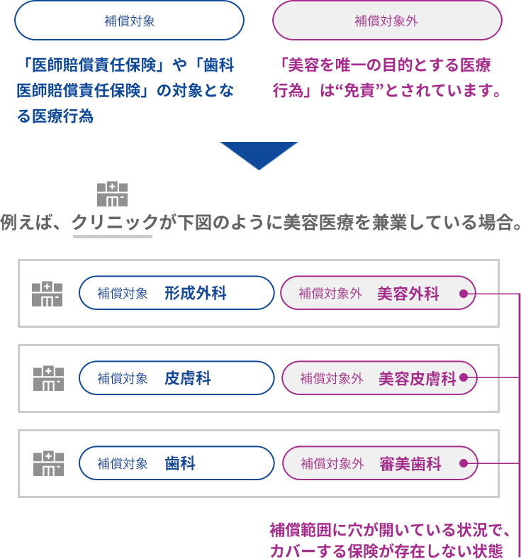 従来の医師賠償責任保険は、美容を唯一の目的とする医療行為は補償対象外。